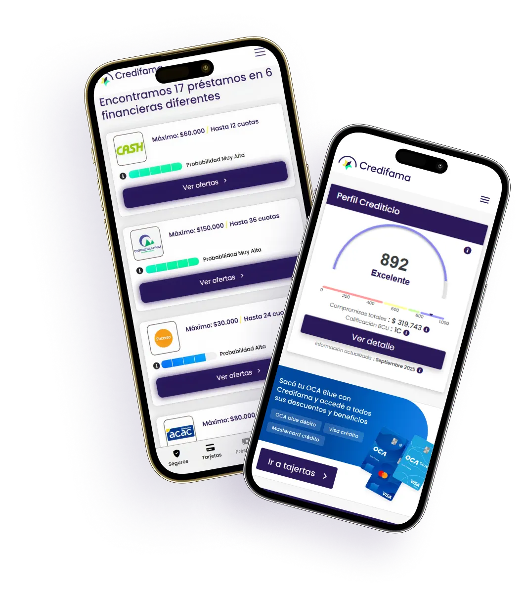 Accedé a préstamos, tarjetas, seguros y más. Compará las opciones que mejor se alinean a tus necesidades. Usá Credifama, de manera rápida y segura.